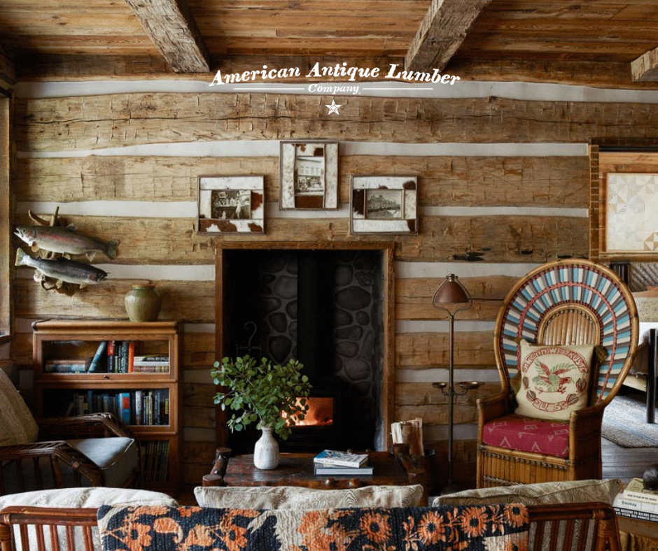 Our reclaimed hand hewn exterior log siding is created from cabin logs and carrier or maul logs from barns that were hewn on two sides. These logs, once sawn, leave the natural log edge, creating a stacked log look and can be used for corner detail as well.